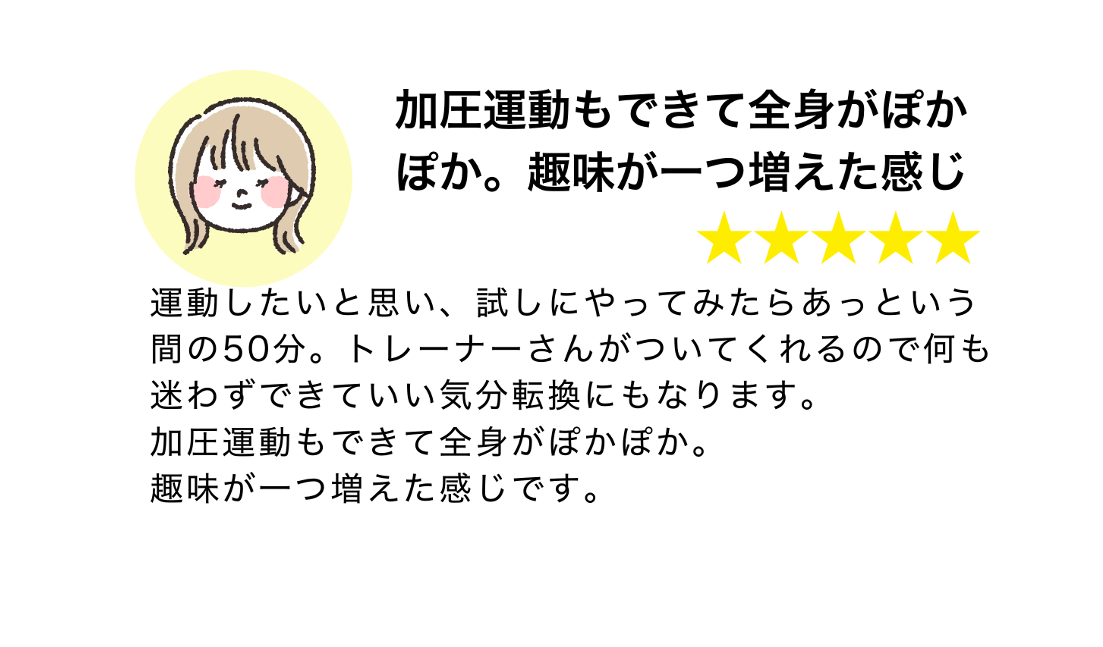 加圧トレーニングを行うことで、肌のハリやツヤなど「若返り」に効果的とされる成長ホルモンが通常の最大約290倍も分泌されると言われています。