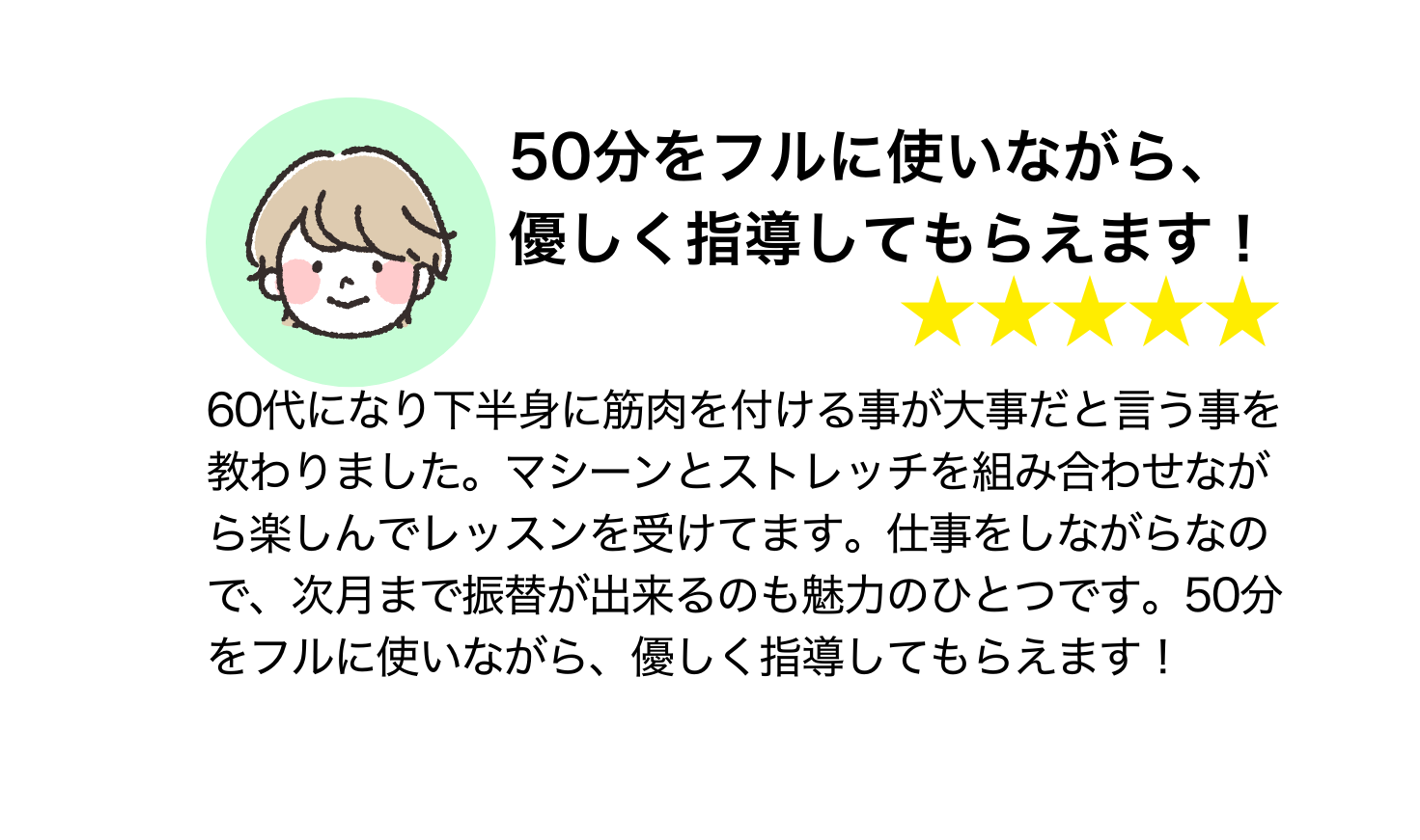 習いごとのようにご利用いただく曜日と時間をあらかじめ決めていただくことで「通いやすく」「続けやすく」なります。